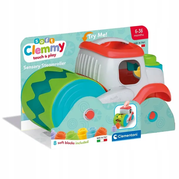 Zabawny pojazd sensoryczny z pożerającym klocki wałkiem, wyróżniający się charakterystycznym zornictwem Clemmy. Pojazd ma wiele faktur i wstawek wykonanych z miękkiego materiału, takiego jak klocki Clemmy, które stymulują percepcję dotykową u dziecka. Dziecko będzie się dobrze bawić, zjadając klocki miękkim wałkiem, budując mnóstwo wież, wkładając klocki przez otwór i wyciągając je. Klocki Clemmy są miękkie, bezpieczne i zmywalne. Sprzyjają rozwojowi sensorycznemu, motorycznemu i poznawczemu dziecka. Cała gama Clemmy jest w 100% wyprodukowana we Włoszech.