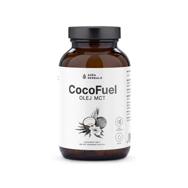 Olej MCT z kokosa (średniołańcuchowe trójglicerydy kwasów tłuszczowych); otoczka kapsułki: żelatyna wołowa, substancja utrzymująca wilgoć: glicerol.