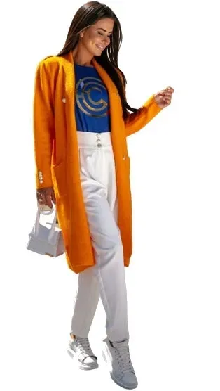 Długość midi tego kardiganu sprawia, że może on z łatwością zastąpić wiosenną kurtkę lub płaszcz. Ponadto, dwie praktyczne kieszenie z przodu sprawiają, że jest on nie tylko elegancki, ale także niezwykle funkcjonalny w codziennym użytkowaniu.