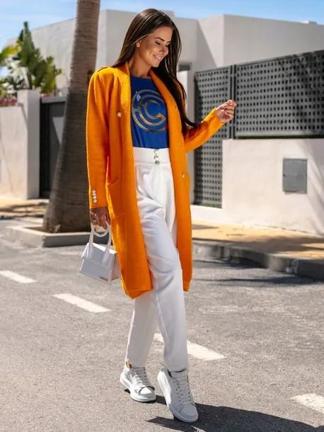 Długość midi tego kardiganu sprawia, że może on z łatwością zastąpić wiosenną kurtkę lub płaszcz. Ponadto, dwie praktyczne kieszenie z przodu sprawiają, że jest on nie tylko elegancki, ale także niezwykle funkcjonalny w codziennym użytkowaniu.
