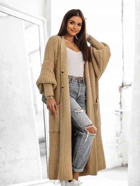 Wyróżniający się design z szerokimi, efektownymi guzikami, pojemnymi kieszeniami i bufiastymi, ściągaczowymi rękawami to coś, czego nie znajdziesz nigdzie indziej. Kardigan ten dodaje wyrazistości każdej stylizacji.