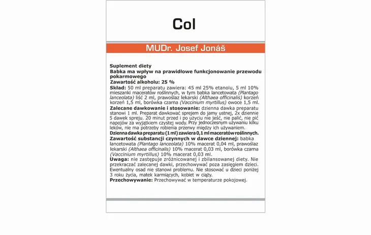 Col Marion to specjalistyczny preparat informacyjny stworzony przez dr Josefa Jonáša, którego celem jest wsparcie procesów detoksykacji przewodu pokarmowego - od dwunastnicy aż po odbytnicę, ze szczególnym uwzględnieniem jelita cienkiego, które pełni zasadniczą funkcję wchłaniania substancji odżywczych do krwioobiegu. W świetle badań dr Josefa Jonáša, kondycja układu pokarmowego jest fundamentem zdrowia, ponieważ to właśnie tam bytują biliony mikroorganizmów tworzących nasz wewnętrzny ekosystem.