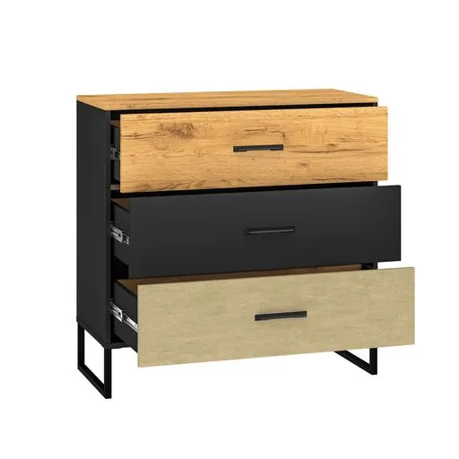 Kolekcja Colt to doskonała propozycja dla młodych osób które marzą o nowoczesnym wnętrzu z akcentami stylu industrialnego. Dekory drewna, czerni i stali idelanie wpiszą się w takie oczekiwania. Meble te osadzone są na solidnych metalowych nogach. Czarny kolor z delikatnym satynowym połyskiem doskonale współgra z uchwytami o nowoczesnych kształtach.