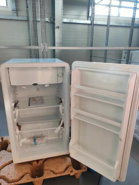 - Klasa E przyjazna dla środowiska – Ta zabytkowa lodówka jest przyjazna dla środowiska, charakteryzuje się niskim zużyciem energii i niskim poziomem hałasu (41 dB). Aby oszczędzać energię, lodówka nie ma żarówki.