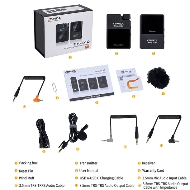 BoomX-D D1 składa się z ultra kompaktowego nadajnika z własnym wbudowanym mikrofonem dookólnym i oddzielnym mikrofonem krawatowym oraz odbiornika dwukanałowego. Nadajnik pełniąc rolę mikrofonu może być przypięty do ubrania lub nawet trzymać go w dłoni jako ręczny mikrofon.