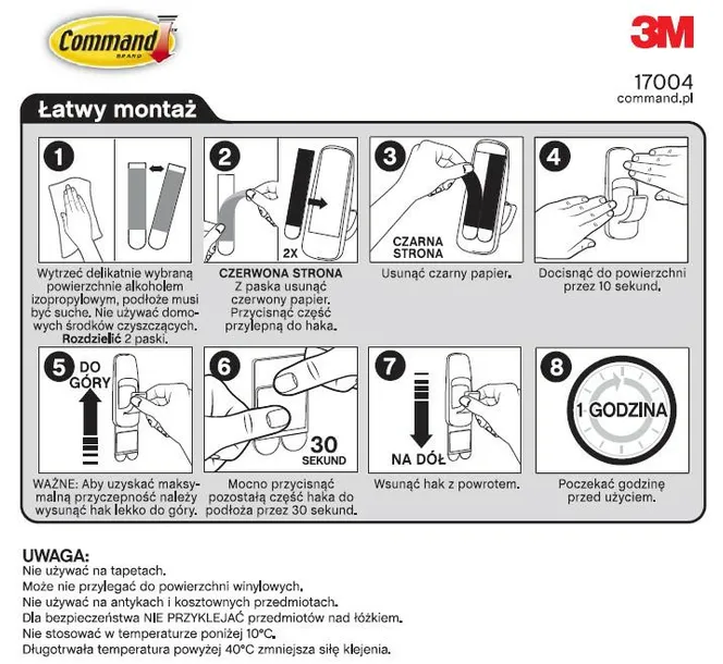 COMMAND 3M HACZYK Hak duży XL to doskonałe rozwiązanie do wieszania rozmaitych przedmiotów w domach, biurach czy warsztatach. Spraw, aby organizacja przestrzeni stała się przyjemnością!