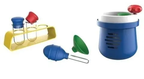 Zestaw pozwala najmłodszym na zapoznanie się z działaniem wirówki i kroplomierza, dzięki mieszaniu różnych składników i barwników (nie dołączone do zestawu).