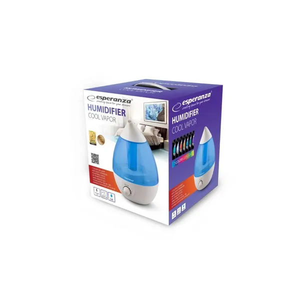 Ultradźwiękowy nawilżacz powietrza Esperanza COOL VAPOR to nowoczesne urządzenie, które skutecznie dba o optymalne nawilżenie powietrza, jednocześnie tworząc wyjątkową atmosferę w pomieszczeniu dzięki wbudowanemu, 7-kolorowemu podświetleniu LED. Jego cicha praca sprawia, że jest idealnym rozwiązaniem do sypialni i pokojów dziecięcych. Regulowany poziom intensywności pary pozwala na dostosowanie działania do indywidualnych potrzeb, a duży zbiornik o pojemności 2,6 litra umożliwia 8,5 godziny pracy bez przerwy. Funkcja automatycznego wyłączania i alarmu przy braku wody zapewniają bezpieczeństwo użytkowania. Regularne nawilżanie powietrza poprawia komfort oddychania, chroni przed przesuszeniem skóry i wspiera lepszy sen.