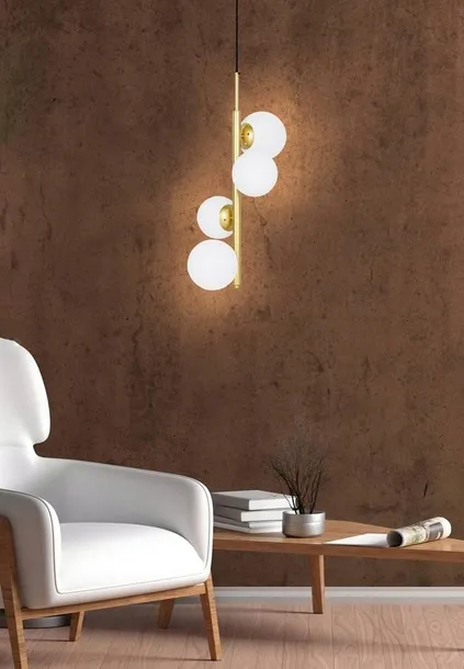 Nazwa w magazynie: Cordel lampa wisząca mosiądz 4x20w g9 klosz biały