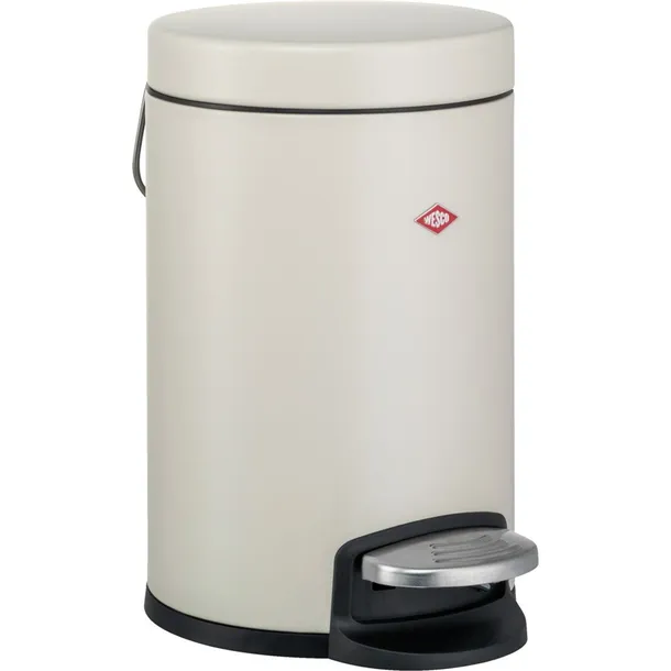 Mały kosz na kosmetyki o pojemności 3 litrów, z praktycznym uchwytem i zintegrowanym amortyzatorem zapewniającym ciche zamykanie pokrywy.