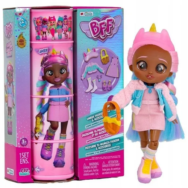Poznaj nowe BFF - Najlepsze Przyjaciółki!Teraz Twoje ulubione bohaterki z Cry Babies Magic Tears dorosły i są już nastolatkami! Mają 13 lat i czeka na nie wiele przygód. W kolekcji jest 6 lalek do zebrania, a każda z nich ubrana jest w trendy strój zgodny z ostatnim krzykiem mody. Mają 15 cm wysokości, kolorowe włosy, kryształowe oczka i w pełni ruchome ciała. Którą Najlepszą Przyjaciółkę wybierzesz? Obróć tubkę, aby się przekonać! Odpakuj i odkryj ich garderobę razem z ponad 9 niespodziankami: 2 częściami stroju, torbą, opaską lub nakryciem głowy, parą dopasowanych bucików ze skarpetkami oraz naszyjnikiem! Lalki BFF mają jedwabiste, nylonowe włosy oraz prawdziwie modne stroje! Każda lalka zapakowana jest w jedyne w swoim rodzaju pudełko, które jest jednocześnie ich garderobą! Obróć kawałkami tuby, aby odkryć różne pozy, które może przybrać Twoja Najlepsza Przyjaciółka!Energiczne, urocze i zachwycające bohaterki serialu Cry Babies Magic Tears (Kristal, Stella, Katie, Jenna, Dotty, Phoebe) są teraz pewnymi siebie nastolatkami, z niezmiennym urokiem, swoją dotychczasową niewinnością oraz cudownymi żda z 6 kolekcjonerskich lalek posiada swój unikalny styl, który doskonale wpisuje się w aktualne trendy modowe. Piękne, kolorowe włosy, barwne ubrania i ciekawe akcesoria sprawiają, że zabawa jest jeszcze lepsza. Dzięki ruchomym częściom ciała, lalki można ustawiać w ciekawe pozy. Każda lalka zapakowana jest w jedyne w swoim rodzaju pudełko, które jest jednocześnie jej garderobą!Jassy ma stylowe, tęczowe włosy i nosi modny strój: sportową różowo-niebieską kurtkę, zachwycającą różową spódniczkę i pasujące trampki! Stylizację dopełniają urocza czapka z rogiem jednorożca, naszyjnik BFF oraz torebka w kształcie Friends Forever to grupa nastoletnich przyjaciółek, które odkryją, że razem potrafią przezwyciężyć wszelkie przeciwności losu i zostać Najlepszymi Przyjaciółkami na zawsze!Poznaj energiczne, urocze i zachwycające nastolatkiKażda posiada unikalny styl zgodny z aktualnymi trendami modowymiIch piękne, kolorowe włosy i akcesoria urozmaicą zabawęJedyne w swoim rodzaju pudełko, jest jednocześnie stylową garderobą!Odkryj wiele niespodzianek, w tym magiczny naszyjnik
