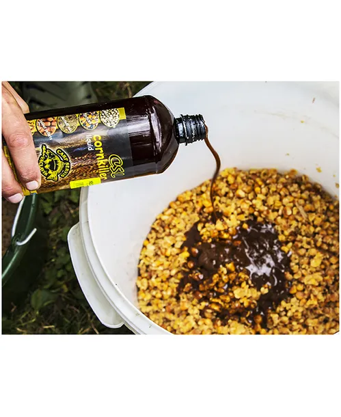 CSL Cornkiller stosuje się jako polewę na wszelkiego rodzaju pelety, kulki, cząsteczki, miękkie przynęty, mixy i przynęty mieszane. Podstawą tego produktu jest CSL, który produkuje się z kukurydzy. Karpie ją uwielbiają. Ponad to, produkt ten zawiera całą gamę aromatów, przypraw i substancji aromatycznych, które razem tworzą wyjątkowy stymulator podczas połowu karpi. CSL Cornkiller nie rozpuszcza PVA. Wręcz przeciwnie, można go wykorzystać jako częściowy spowalniacz rozpadu PVA i innych produktów z PVA.