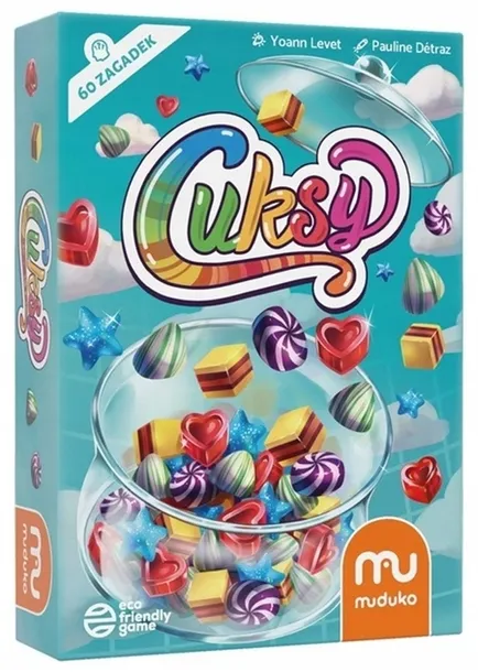 Wybierz się w cukierkową podróż z grą logiczną o prostych zasadach i głębią logiki! Weź kartę, rozwiąż zagadkę i ułóż kafelki z cukierkami tak, aby odwzorować kombinację z karty. Jest tylko jedno rozwiązanie zagadki, które znajdziesz je na rewersie karty. Zmierz się z 60 wyzwaniami o narastającym poziomie trudnoś to kompaktowa, kolorowa pozycja już od 1 gracza, która będzie doskonałym prezentem dla fanów łamigłówek i logicznych wyzwań. Dzięki zróżnicowanemu poziomowi trudności nie będą nudzić się tu ani siedmiolatki, ani dorośli ły Ci się Cuksy? Sprawdź także Hotel.60 zagadek i Ptaki.60 zagadekZawartość opakowania:7 kafelków z cukierkami60 kart z zagadkamiInstrukcjaEkspresowa wersja zasad:1. Weź kafelki z cukierkami widoczne po lewej stronie karty2. Ułóż je tak wewnątrz pudełka, by odwzorować kombinację z karty3. Odwróć kartę i sprawdź prawidłowe rozwiązanie4. Dobierz nowa kartę i spróbuj rozwiązać kolejna zagadkęLiczba graczy: 1+, Wiek: 7-99, Czas trwania: 5 minut