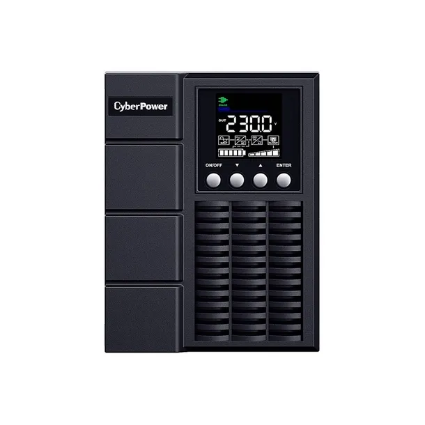 CyberPower OLS1000EA. Topologia UPS: Podwójnej konwersji (online), Maksymalna możliwa do konfiguracji moc: 1 kVA, Moc rzeczywista: 900 W. Typy wyjść AC: IEC 320, Wtyczka: C13 panel, Ilość gniazd sieciowych: 3 x gniazdo sieciowe. Technologia baterii: Ołowiany (VRLA), Typowy czas podtrzymania przy pełnym obciążeniu: 4 min, Typowy czas podtrzymania przy połowie obciążenia: 11 min. Układ: Tower, Kolor produktu: Czarny, Materiał obudowy: Metal. Szerokość produktu: 140 mm, Głębokość produktu: 327 mm, Wysokość produktu: 191 mm