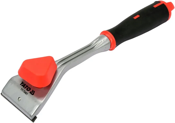 Profesjonalna cyklina metalowa (skrobak) marki Yato, przeznaczona do skutecznego usuwania starych powłok lakierniczych, farb, klejów i innych zanieczyszczeń. Wyposażona w ostre, dwustronne ostrze ze stali węglowej o szerokości 62 mm. Aluminiowy korpus z dodatkowym uchwytem prowadzącym oraz miękka rękojeść zapewniają komfort i precyzję pracy.
