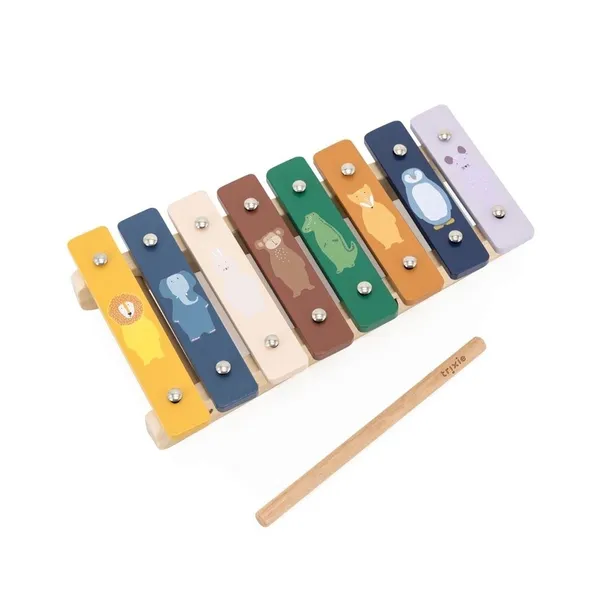 Dołącz do zespołu z kolorowymi, drewnianymi cymbałkami od Trixie Baby. Twoje dziecko będzie uczyć się kolorów i nut wraz ze swoimi ulubionymi zwierzęcymi przyjaciółmi, wyrażając swoją kreatywność i tworząc piękne melodie. Pałeczka łatwo chowa się w cymbałkach co zapewnia bezpieczeństwo. Skład: Drewno bukowe FSC(R) - drewno sosnowe FSC(R) Zalecany wiek: 18 miesięcy + Wymiary: 24,5 x 13,5 x 4,5 cm