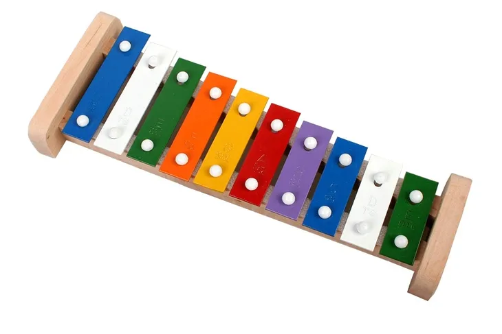 Dzwonki 10 tonowe polskiej produkcji. Zbudowane są z drewnianej podstawy, do której przymocowano 10 metalowych sztabek o różnej wielkości i o różnej wysokości dźwięku każda. Drewniany korpus zapewnia dobre mocowanie sztabek oraz przyjemny dla ucha dźwięk instrumentu. Dźwięki sztabek ułożone zostały diatonicznie w skali od dźwięku c3 do e4. Każda ze sztabek posiada wygrawerowaną nazwę dźwięku co z pewnością ułatwi grę każdemu małemu muzykowi. W komplecie z dzwonkami dołączono dwie pałeczki.