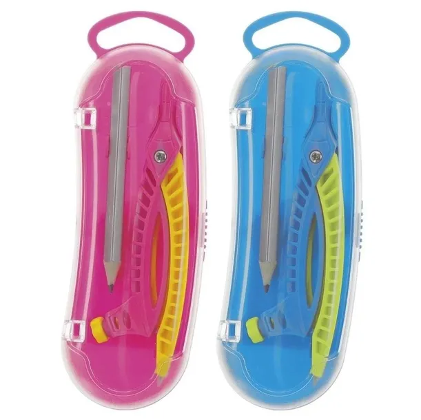 Cyrkiel plastikowy 2-elementowy, w zestawie: cyrkiel z uchwytem na ołówek, ołówek, w plastikowym etui,