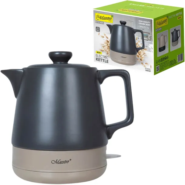 Korpus czajnika wykonany z wysokiej jakości ceramiki nadaje urządzeniu stylowy i luksusowy wygląd. Materiał ten nie tylko zachwyca estetyką, ale również zapewnia doskonałe właściwości izolacyjne, chroniąc zewnętrzne ścianki przed nagrzewaniem. Z pojemnością 1 litra, MAESTRO MR-071 doskonale sprawdzi się w mniejszych gospodarstwach domowych, biurach czy jako praktyczne rozwiązanie do szybkiego przygotowania herbaty lub kawy.