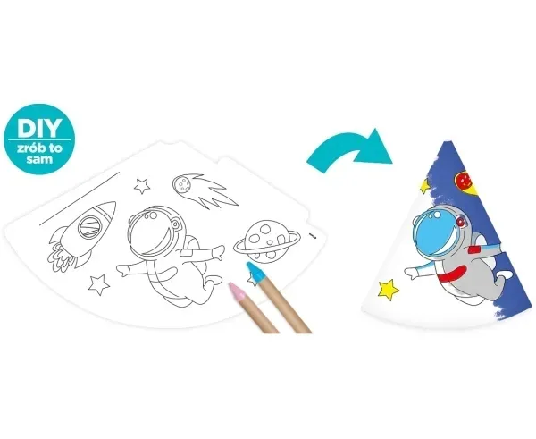 Czapeczki papierowe Pokoloruj Sam Kosmos 6 szt.
