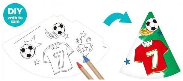Czapeczki papierowe POKOLORUJ SAM Piłka Nożna 6szt