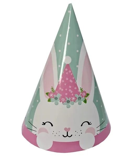 Czapeczki papierowe urodzinowe na urodziny zwierzątka KRÓLIK króliczek 6szt