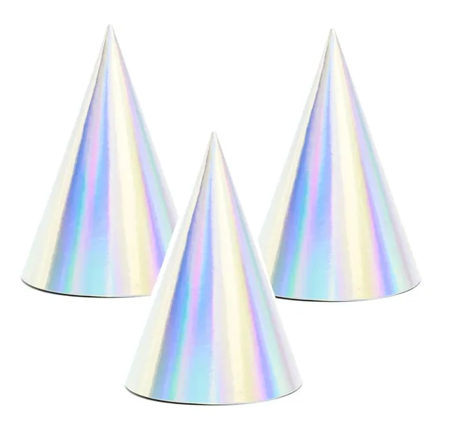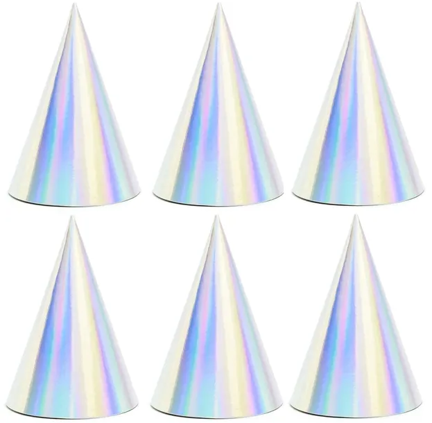 Czapeczki papierowe urodzinowe srebrne opalizujące - 6 szt