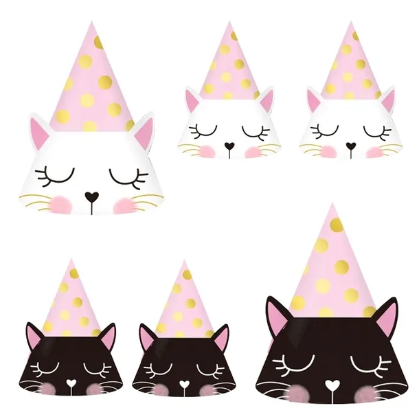 Czapeczki papierowe - kotek, 6 sztuk