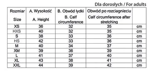 - XS - wysokość 35 cm - obwód łydki od 31 cm do 35 cm