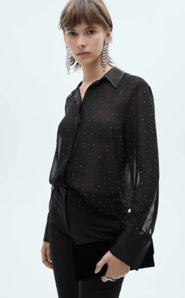 CZARNA PRZEŚWITUJĄCA KOSZULA MANGO S