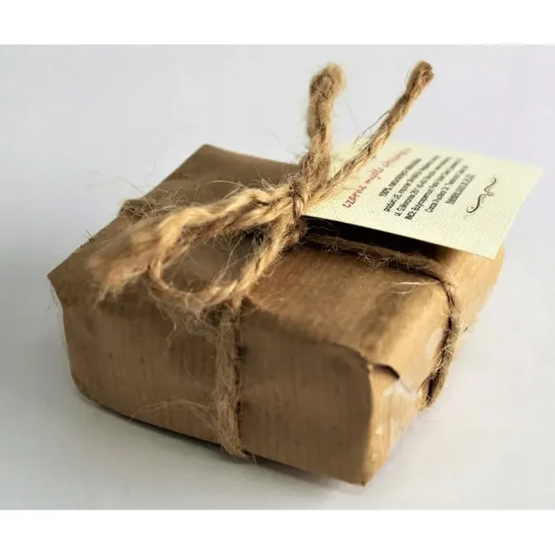 Mydło w myśl idei "zero waste" zapakowaliśmy w papier, przewiązany sznurkiem naturalnym.