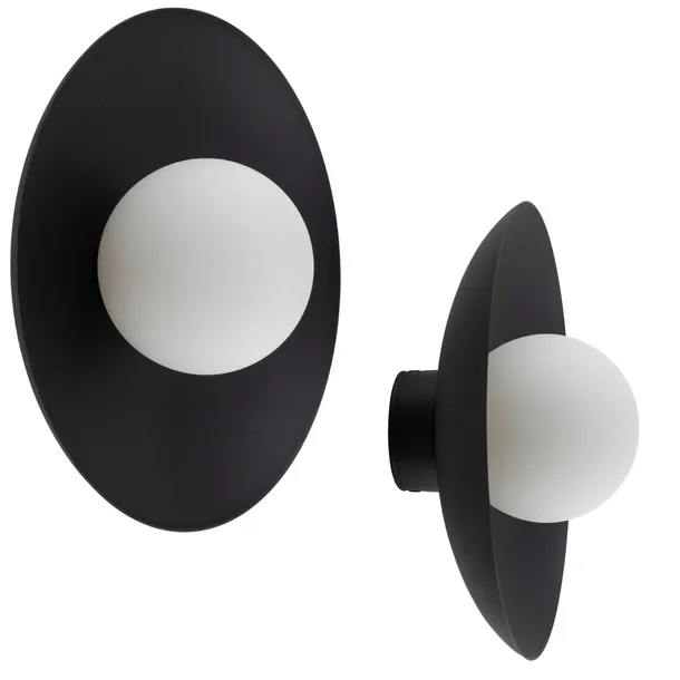Czarny kinkiet SLATE to połączenie wyrazistej formy i ponadczasowej elegancji. Kontrast między matowym, metalowym korpusem a białą, kulistą taflą szkła nadaje lampie nowoczesnego charakteru, który doskonale odnajdzie się w aranżacjach loftowych, minimalistycznych oraz modern. Okrągła forma o średnicy 28 cm przyciąga uwagę, nie dominując jednocześnie przestrzeni. Mleczny klosz zapewnia miękkie, równomierne oświetlenie, budując przyjemny klimat w salonie, sypialni czy przedpokoju. Wysokiej jakości materiały – metal i szkło – gwarantują trwałość oraz stabilność konstrukcji. Kinkiet przeznaczony jest do żarówki LED o maksymalnej mocy 8W, co umożliwia energooszczędne użytkowanie. To stylowa oprawa ścienna, która stanowi zarówno funkcjonalne źródło światła, jak i wyrazisty element dekoracyjny.