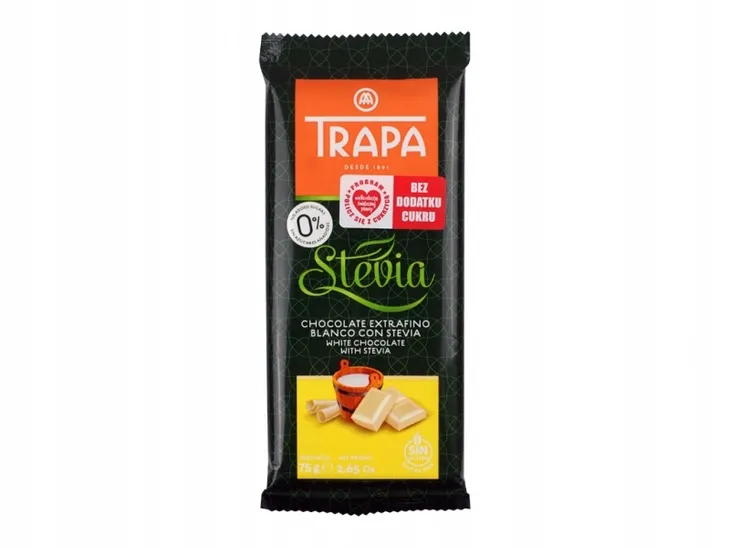 <br><p>substancja słodząca (maltitol, glikozydy stewiolowe 0,02%), tłuszcz kakaowy, mleko w proszku, masło (z mleka), emulgator (lecytyna sojowa), aromat</p> <p> </p> <p><strong>WARTOŚCI ODŻYWCZE</strong></p> <p>Wartość odżywcza w 100g</p> <p>Wartość energetyczna 2015kJ/486kcal</p> <p>Tłuszcz 34g</p> <p>w tym kwasy tłuszczowe nasycone 21g</p> <p>Węglowodany 57g, w tym:</p> <p>cukry 10g</p> <p>alkohole wielowodorotlenowe (poliole) 46g</p> <p>Białko 5,9g</p> <p>Sól 0,19g</p> <p>ALERGENY</p> <p>mleko, soja</p> <p> </p> <p><strong>WARUNKI PRZECHOWYWANIA</strong></p> <p>Przechowywać w suchym i chłodnym miejscu.</p> <p> </p> <p><strong>UWAGI</strong></p> <p>Spożycie w nadmiernych ilościach może mieć efekt przeczyszczający. Zawiera naturalnie występujące cukry.</p>