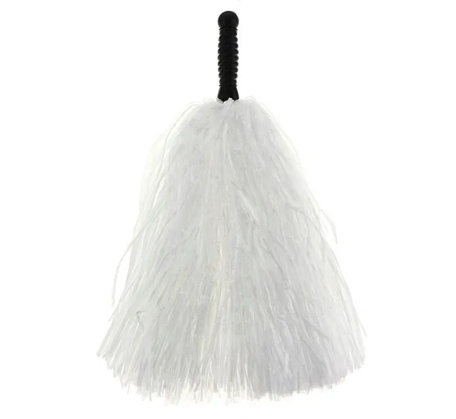 Pompon czirliderki do kibicowania - biały Długość rączki 10 cm Długość włosia 40 cm Pompon w kolorze białym. Do czirliderki przymocowana jest czarna rączka z tworzywa.