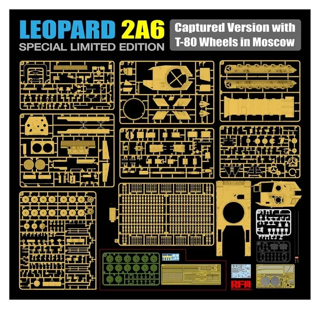 Model plastikowy do sklejania w skali 1:35, niemieckiego czołgu Leopard 2A6 Captured Version with T-80 Wheels in Moscow.