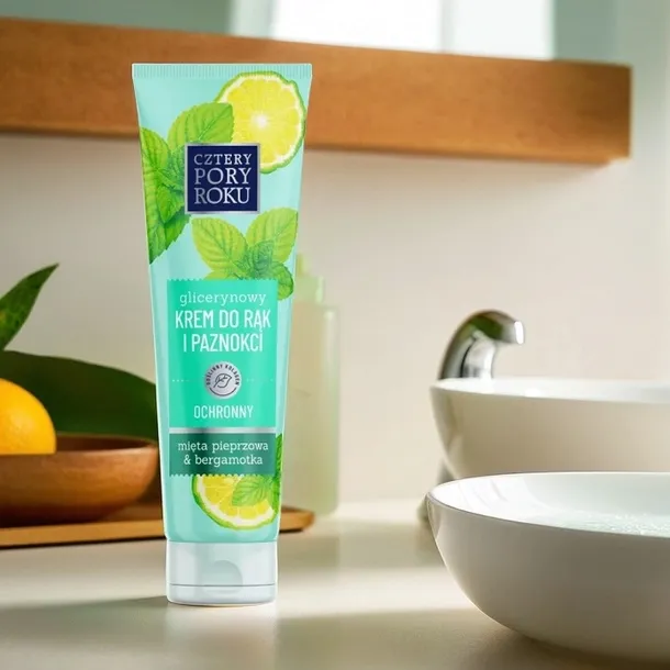 Cztery Pory Roku Ochronny Krem do Rąk Bergamotka i Mięta to doskonały produkt dla każdego, kto pragnie zadbać o swoje dłonie w sposób kompleksowy. Jego formuła zapewnia natychmiastowe nawilżenie, a dzięki zawartości gliceryny, długotrwały efekt ochrony. Lekki, świeży zapach dodaje energii, a szybkie wchłanianie kremu sprawia, że jest on idealnym towarzyszem w codziennej pielęgnacji. Regularne stosowanie kremu pozwala cieszyć się gładkimi, miękkimi i zdrowymi dłońmi, bez obaw o uczucie tłustości.