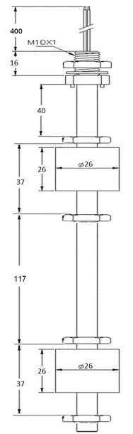 Magnetyczny czujnik poziomu wody CMW240 podwójny, metalowy, prosty.