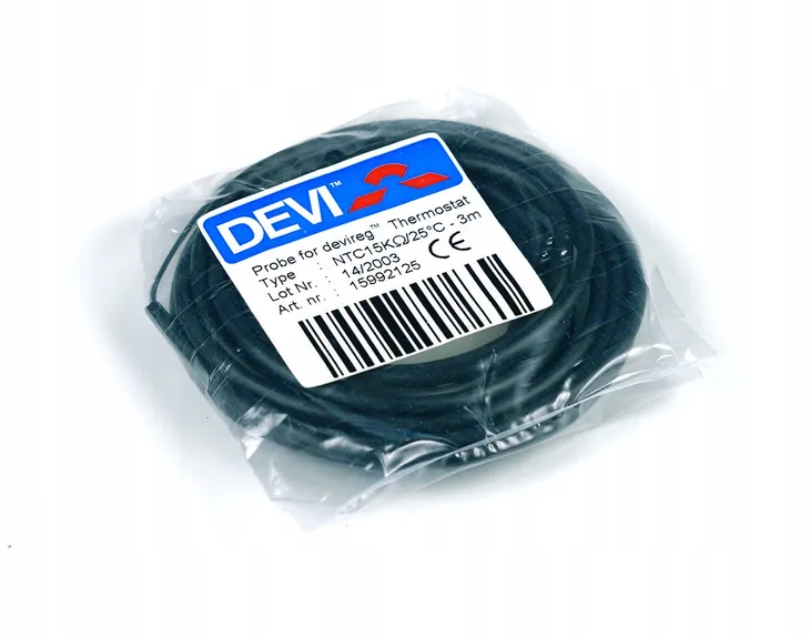 Przewodowy (podłogowy) czujnik temperatury typu NTC (25oC / 15 kOhm).Przewód o długości 3,0 m. Stopień ochrony IP 65.