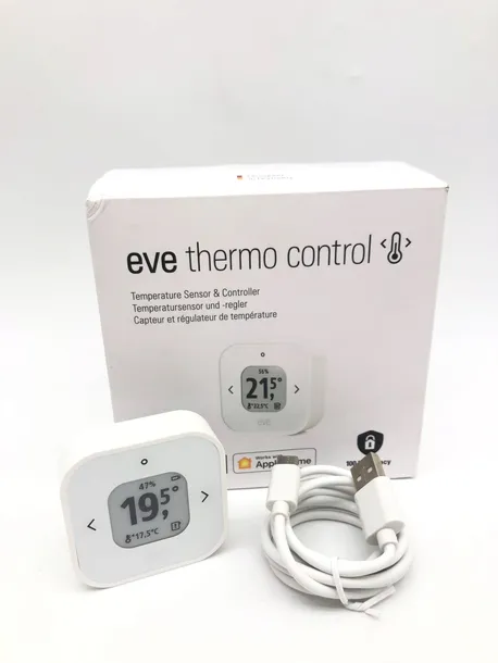 Kompaktowa konstrukcja umożliwia dyskretne umieszczenie Eve Thermo Control obok sofy, biurka lub przy łóżku. Wyświetlacz e-ink pokazuje temperaturę i wilgotność powietrza na pierwszy rzut oka i jest czytelny nawet w jasnym słońcu. Alternatywnie otwórz aplikację Apple Home lub Eve na iPadzie lub iPhonie. Długotrwały akumulator można szybko i łatwo naładować przez USB-C, co ułatwia codzienne użytkowanie bez konieczności używania gniazdka elektrycznego lub zapasowych baterii.