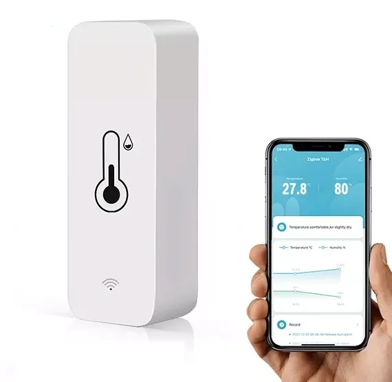 Nasz czujnik umożliwia monitorowanie i rejestrowanie temperatury oraz wilgotności w pomieszczeniu na bieżąco. W aplikacji TUYA (SmartLife) lub eWeLink wyświetlają się aktualne oraz historyczne dane. Gdy czujnik zidentyfikuje niecodzienne zjawisko w środowisku, natychmiast wyśle powiadomienie alarmowe na Twój telefon lub uruchomi scenariusz zdefiniowany przez Ciebie (np. włączenie klimatyzacji lub ogrzewania, do czego potrzebne jest smart gniazdko lub przekaźnik).