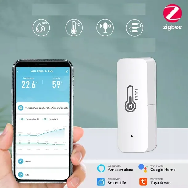 Sterowanie głosem czujnikiem temperatury i wilgotności TUYA jest wygodne, łatwe w obsłudze i precyzyjne. Dzięki integracji z innymi urządzeniami, umożliwia monitorowanie warunków w pomieszczeniu i oszczędność energii.