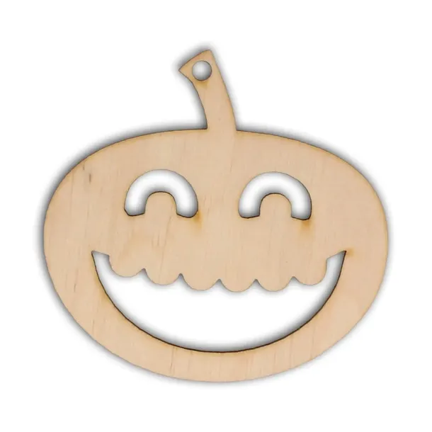 Drewniana zawieszka w kształcie uśmiechniętej dyni. Idealna na dekoracje na Halloween. Nadaje się do samodzielnego zdobienia techniką decoupage.