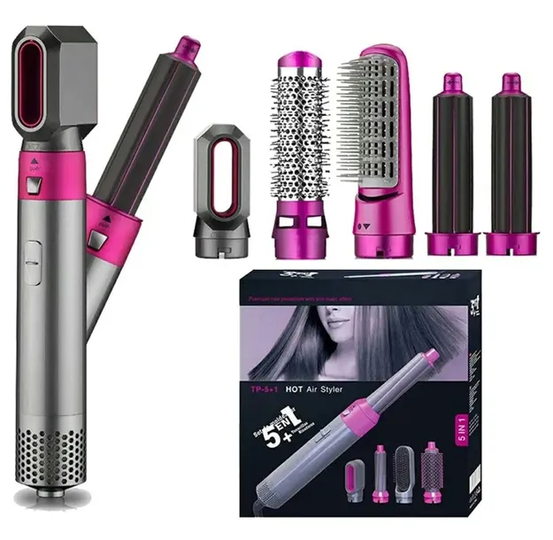 Wielofunkcyjna suszarka do włosów - wyposażona w aż 5 końcówek do stylizacji włosów. Dzięki wykorzystaniu funkcji gorącego powietrza (hot air), może posłużyć jednocześnie za klasyczną suszarkę, jak też szczotkę, prostownicę czy lokówkę. Urządzenie jest bardzo proste w obsłudze, wystarczy podłączyć je do prądu i uruchomić jeden z 3 programów pracy (w 3 zakresach temperatury) oraz nałożyć odpowiednią końcówkę. Zalecamy korzystać ze szczotki przy lekko wilgotnych włosach, aby osiągnąć najlepszy efekt stylizacji.