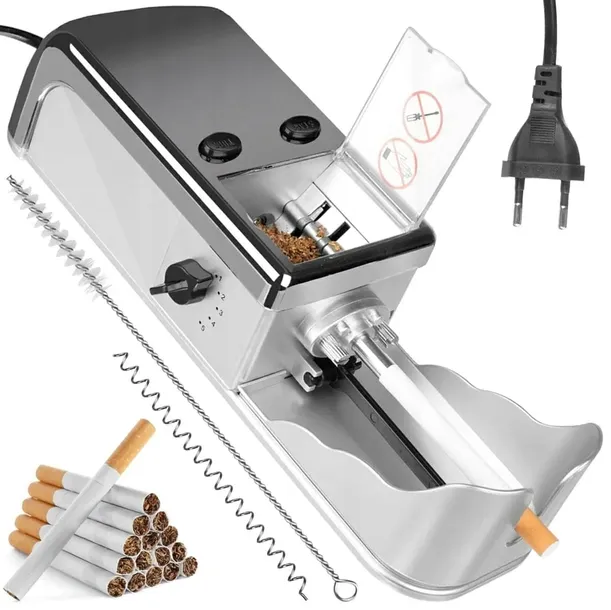 - Elektryczna nabijarka do papierosów. Idealna dla osób, które chcą przygotowywać papierosy własnoręcznie i tym samym oszczędzić na paleniu.