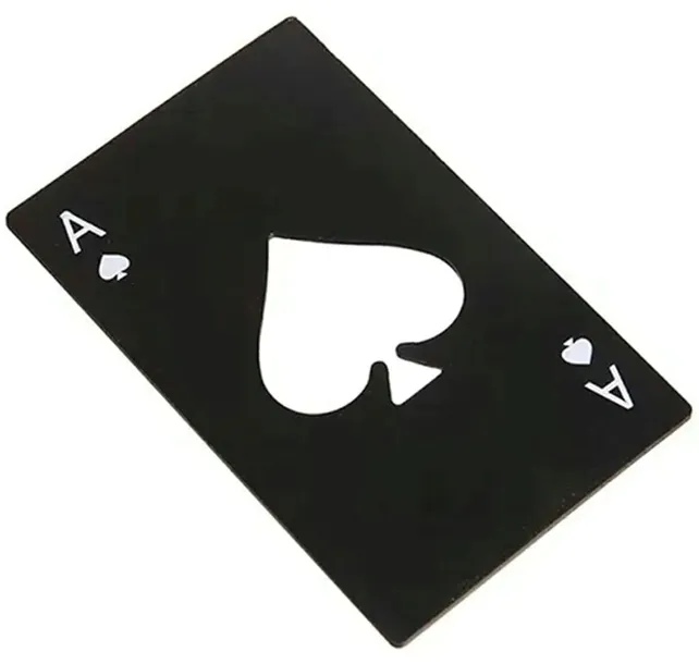 - Stalowy otwieracz do butelek w oryginalnym kształcie karty as pik.