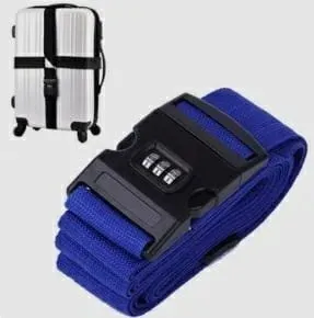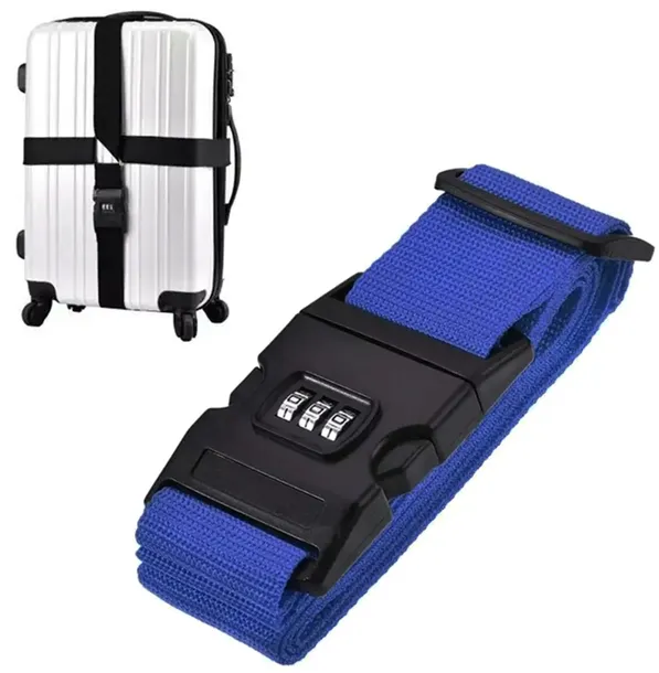 Pas zabezpieczający do bagażu. Wyposażony w solidną klamrę z 3 cyfrowym kodem zabezpieczającym. Dodatkowym atutem jest również zawieszka adresowa z możliwością wpisania danych. Prosta zasada działania, wystarczy owinąć walizkę taśmą i ustawić pożądany kod wciskając boczne ząbki klamry i ustawiając trzy cyfry bez wysuwania klipsu z klamry.