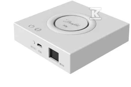 Danfoss AllY - Bramka łączy wszystkie urządzenia systemu Danfoss Ally z Internetem i inteligentnie steruje ogrzewaniem za pomocą bezpłatnej aplikacji na telefon komórkowy lub tablet.W zestawie zasilacz i kabel LAN do połączenia z Internetem.