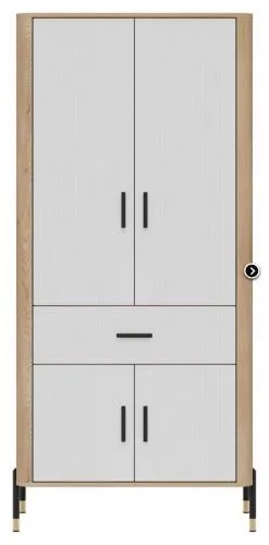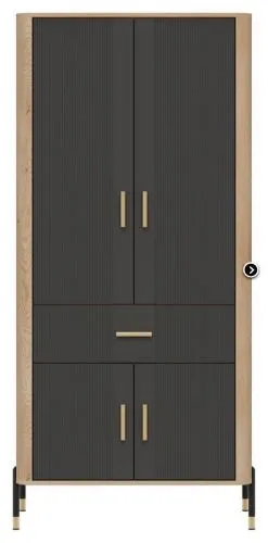 Maksymalna pojemność w eleganckim wydaniu. Dante DT16 to szafa, która doskonale łączy w sobie elegancki design z wyjątkową funkcjonalnością. Jej nowoczesna forma i przemyślana konstrukcja sprawiają, że stanowi ona doskonały wybór do salonu, jadalni, przedpokoju, a nawet biura – wszędzie tam, gdzie potrzebujesz estetycznego i pojemnego miejsca do przechowywania. Fronty mebla w w pięciu matowych wariantach kolorystycznych do wyboru, nadają mu szlachetności i nowoczesnego charakteru, podczas gdy korpus w dekorze naturalnego dębu ociepla całość, wprowadzając przytulność i styl. Mebel został wyposażony w cztery zamykane strefy – górne i dolne szafki z podwójnymi drzwiami oraz centralną szufladę, która ułatwia organizację drobnych przedmiotów. Solidna, smukła bryła szafy osadzona została na lekkich, metalowych nóżkach z eleganckimi złotymi zakończeniami, co nadaje konstrukcji lekkości i pozwala łatwo utrzymać czystość pod meblem. Całości dopełniają złote lub czarne, pionowe uchwyty, które są zarówno ozdobne, jak i ergonomiczne. Dante DT16 – styl i pojemność w jednym. Ten model to perfekcyjne rozwiązanie dla tych, którzy szukają nowoczesnego, a jednocześnie praktycznego mebla o ponadczasowym charakterze. Nadaj wnętrzu klasy i funkcjonalności dzięki szafie Dante.