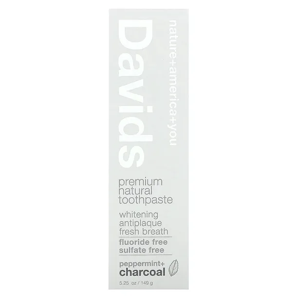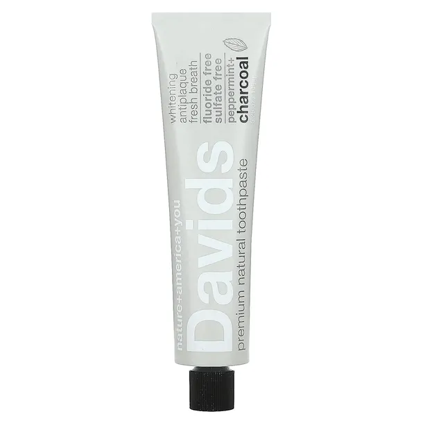 Davids Natural Toothpaste, Premium Natural Toothpaste, Peppermint + Charcoa