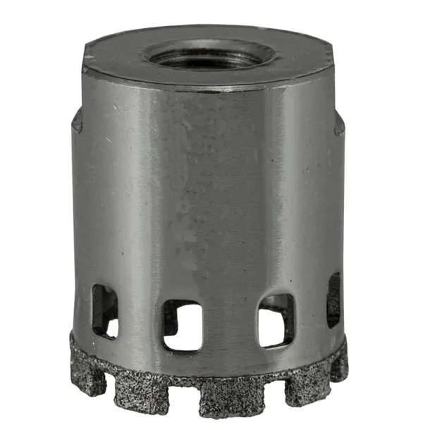 Koronki diamentowe przeznaczone do wiercenia w gresie, terakocie, szkle, białej ceramice, kamieniu. Segmenty pokryte są nasypem diamentowym co ułatwia wiercenie otworów w twardych materiałach jak gres, terakota. Dzięki zastosowaniu wiertła pilotującego proces wiercenia przebiega sprawnie i precyzyjnie. Koronki diamentowe kompatybilne są z uchwytami i wiertłami pilotującymi 08W001, 08W002, 08W006, 08W007. Wymagane chłodzenia podczas wiercenia.